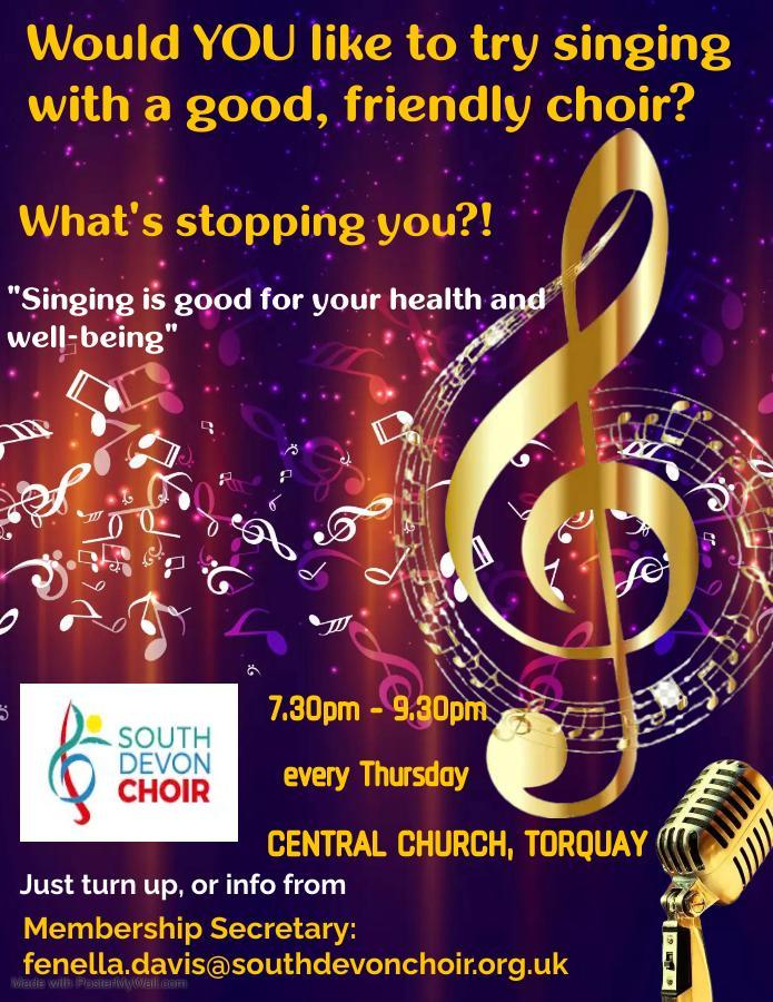 … is fading, will you be ready for a new challenge and adventure? Then come and join us. South Devon Choir is a non audition choir and we welcome singers of all ages and experience. More information about us, how to join the choir and our next concert can be found https://southdevonchoir.org/.