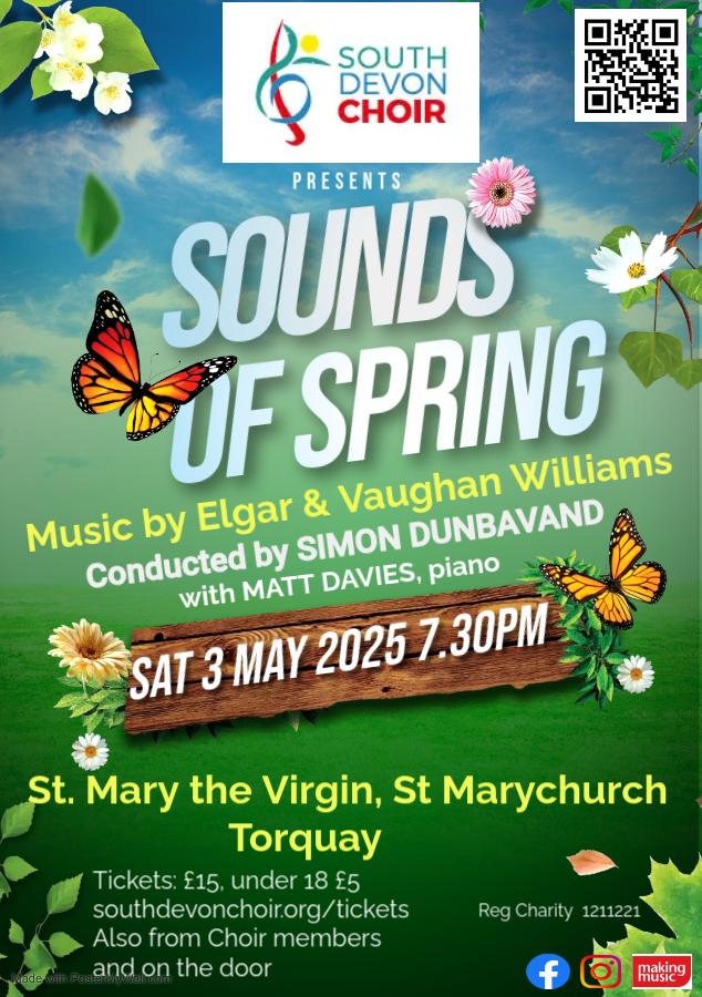 What a glorious few days we are having in the English Riveria. Our spring concert includes Vaughan Williams’ evocative The Lark Ascending in its original version for violin and piano, performed by two of the south west’s leading musicians. Come and hear this masterpiece along with choral music by Elgar and Vaughan Williams at our Sounds of Spring concert in May. You can also enjoy a glass of fizz in the interval! More information and how to book your tickets can be found here: https://southdevonchoir.org/our-spring-concert-sounds-of-spring/