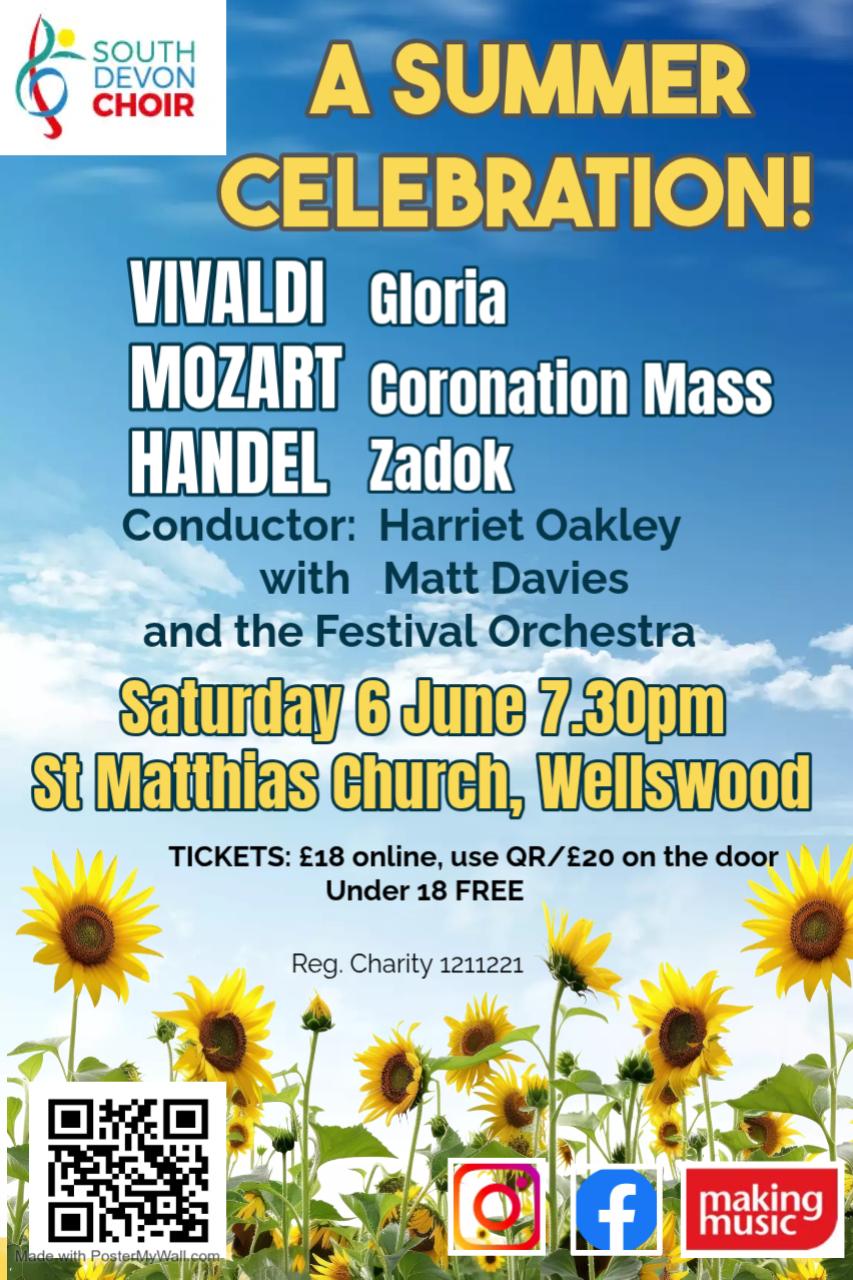 Our summer concert takes place on 6 June 2026 at 7.30 at St Matthias Church, Wellswood, Torquay